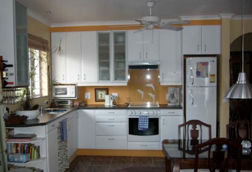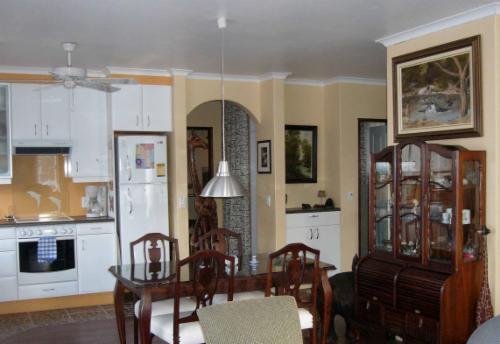 grosszügige, komplett ausgestattete Küche, offen zum Esszimmer / Wohnzimmer / Schlafzimmer (Doppelbett)